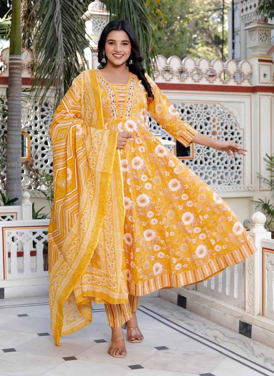 Cotton Printed Anarkali Kurti pant With 2.5 Meter dupatta – 1853VC1840056