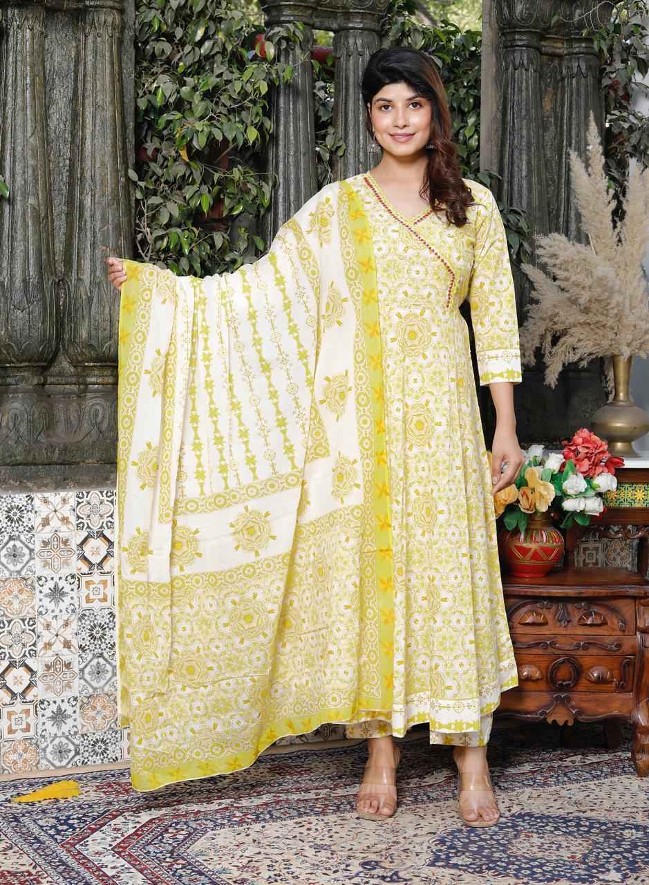 Cotton Printed Anarkali Kurti pant With 2.5 Meter dupatta – 1453VC1840058